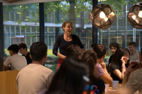 In round three, the students are served rye bread, licorice (both sweet and salty), and a skewer with pickle, cheese and a grape. “If you’re ever invited to a birthday party here in the Netherlands, this is what you can expect,” says Hofstra, referring to the skewer. “You all sit in a large circle and you’re never invited around dinner time because they don’t want to cook for you.” Bitterballen are mentioned too. “A Dutch delicacy.” A few students nod in agreement, already familiar with the savory snack. Unfortunately, the licorice is less well-received. Reactions range from “it tastes like medicine” and “it’s not terrible” to “a unique taste”.