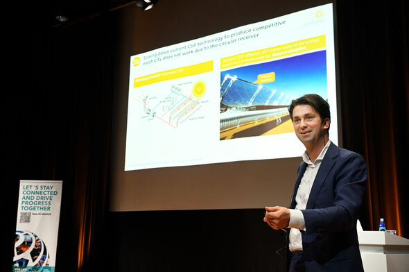 TU/e alumnus Henk Arntz was last to take the floor. With his company Suncom Energy, he is also working on Concentrated Solar Power (CSP). By concentrating sunlight using curved mirrors, water is heated up. This heat can be used to generate electricity with steam, but the hot water can also be supplied directly to industry, which avoids having to use natural gas or diesel to produce warmth.