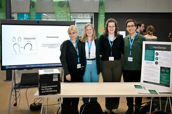 “This year has been all about talking to our target group. The interviews we held inspired multiple concepts,” he said, pointing to the screen next to him. It showed several sketches of an armband, headband and a chain. “These can all make a sound or vibrate, or both, to indicate the direction someone needs to take. The device knows exactly where you are and where you need to go.” It is an initial concept, but Benavent and the team have another year to go. “It will be a huge challenge, but hopefully we'll be standing here next year with a working prototype."