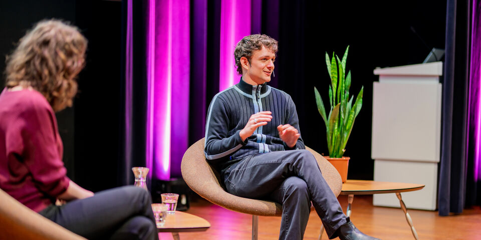 “We still have many questions online and I don’t think you’ll be able to answer all of them,” says Liza Gloudemans, program creator at Studium Generale, more than five minutes after the scheduled end time. Only four questions from the audience have been answered. Due to the delay at the beginning and the relatively long interview about Jurre himself, not a lot of time was left for the taboo questions from TU/e students and staff.