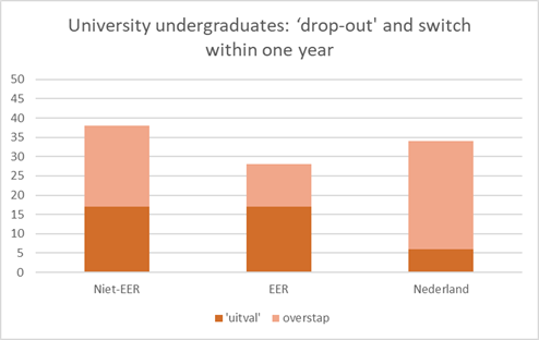 Only 6 percent of Dutch undergraduates stop studying within one year, although 28 percent switch to a different study program.