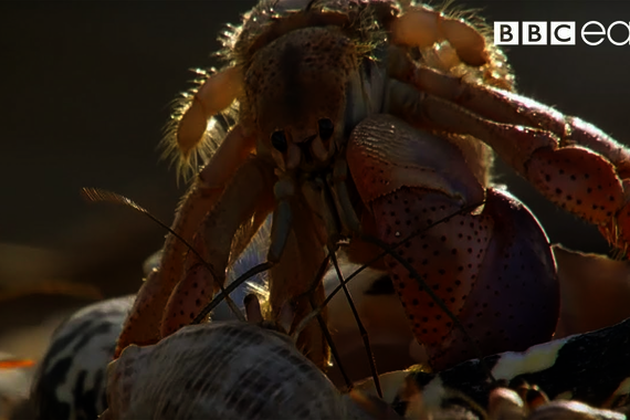 This time we have a recurrent guest, or at least one of his evolutionary cousins: the coconut crab has made way to the hermit crab. An interesting creature possessing no shell of its own, it uses washed up mollusk shells from the beach as its own.