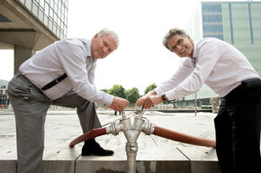 Een snelle rekensom leert dat er zo'n 1.300 kuub water in het enorme gat schiet, dat de centrale waterpartij binnen de Groene Loper op de TU/e-campus moet worden. Jaren eerder lag er op dezelfde plaats ook al een vijver. Voor het vullen van de vijver kwamen rector Hans van Duijn en Industrial Design-decaan Aarnout Brombacher de kraan ceremonieel opendraaien na voorwerk door de brandweer van de TU/e. De brandkraan levert zo'n zestig kuub per uur.