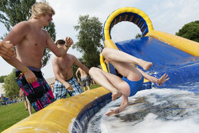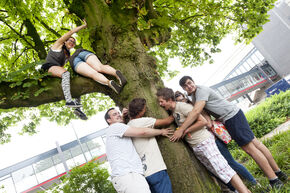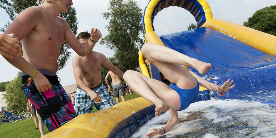 Student , Intro 21/08/2012 ID-eale stormbaanOok bij Industrial Design was het spelletjes wat de klok sloeg vandaag. De introkids van ID trotseerden hoge en vooral glibberige stormbanen en knuffelden bomen (?!). door Brigit Span Deel dit artikel