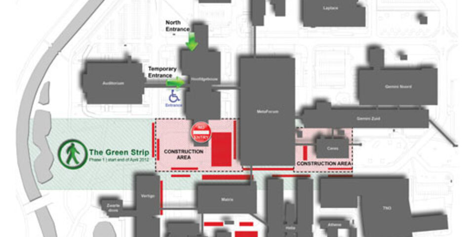 De tweede fase van het nieuwe groene hart, tussen MetaForum en de nieuwbouw van de faculteit Technische Natuurkunde en Electrical Engineering, wordt later aangepakt. Hiervoor wordt tegen die tijd een afzonderlijke aanbestedingsprocedure gestart, aldus Elmans.