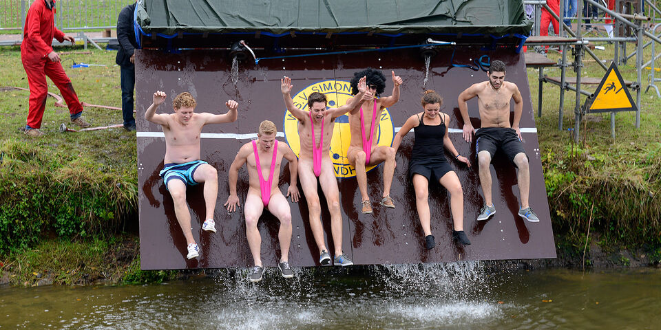 Uitgedost in Borat-mankini, gewoon een zwembroek, of zelfs poedelnaakt. Het is elk jaar weer een feestje: de afsluiting van het eerste OGO-project van de kersverse Werktuigbouwkundestudenten. Hoe sterker de vakwerkconstructie die ze hebben gebouwd, hoe langer ze het droog houden - maar uiteindelijk belanden alle studenten van de wip in de Dommel.