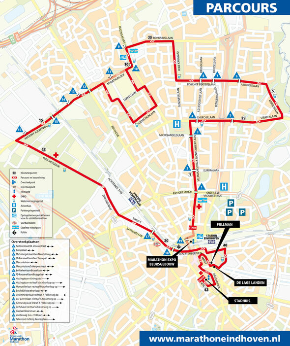 De startplaats voor de twee langste afstanden is op de Veldmaarschalk Montgomerylaan. De marathonlopers worden om 10.00 uur weggeschoten. Deze wedstrijd geldt tevens als Nederlands Kampioenschap. De start van de halve marathon is om 13.30 uur. Voor alle afstanden ligt de eindstreep op het Stadhuisplein. Langs de route worden meer dan 150.000 toeschouwers verwacht.