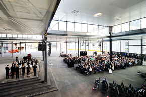 Het nieuwe MetaForum op de campus is -mede vanwege zijn grote open markthal en de Groene Loper die erdoorheen voert- volgens Peels dé plek voor ontmoeting. Er wandelen, studeren, doceren, onderzoeken, borrelen, evenementen organiseren of bezoeken: “Het wordt hier hártstikke leuk”, verzekerde Peels. Eindhoven en de regio spelen daarin, als het aan hem ligt, een nadrukkelijke rol. Of het nu gaat om een dansvoorstelling of debat: “Maak hier gebruik van”, zo nodigde hij uit, wijzend op de locatie van de openingsceremonie.