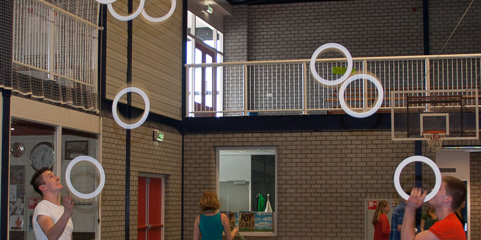 De TU/e biedt dit weekend niet alleen plaats aan duizenden volleyballers, ze geeft ook onderdak aan het Eindhovens Jongleer Festival. In de sporthal van het Studenten Sportcentrum komen beginnende en ervaren jongleurs van 14 tot en met 16 juni samen om te jongleren en trucs uit te wisselen. Bezoekers kunnen aan de slag met spullen van de organisatie.