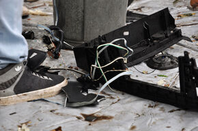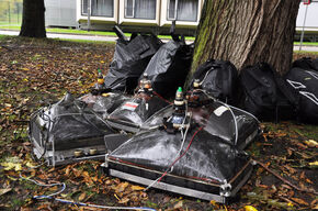 Met de frustraties over het Calculus-tentamen van dezelfde ochtend lijkt het deze maandagmiddag trouwens wel mee te vallen. Toch gooien de eerstejaars maar wat gretig alles eruit én in de strijd om de televisies in drie minuten tijd terug te brengen tot zo’n klein mogelijke porties. Hamers, mokers, een honkbalknuppel, een stuk boomstam, een hockeystick - alles wordt aangerukt om de eigen fysieke kracht een handje te helpen. Eén strenge regel vooraf: eerst moet de beeldbuis er heelhuids uit worden gehaald (lees: vakkundig eruit worden gegóóid), want die is van glas en dus potentieel gevaarlijk. En een tip van Thor-president Esmee Huismans: focus op het kleinmaken van de elektronica, want die weegt het meest.