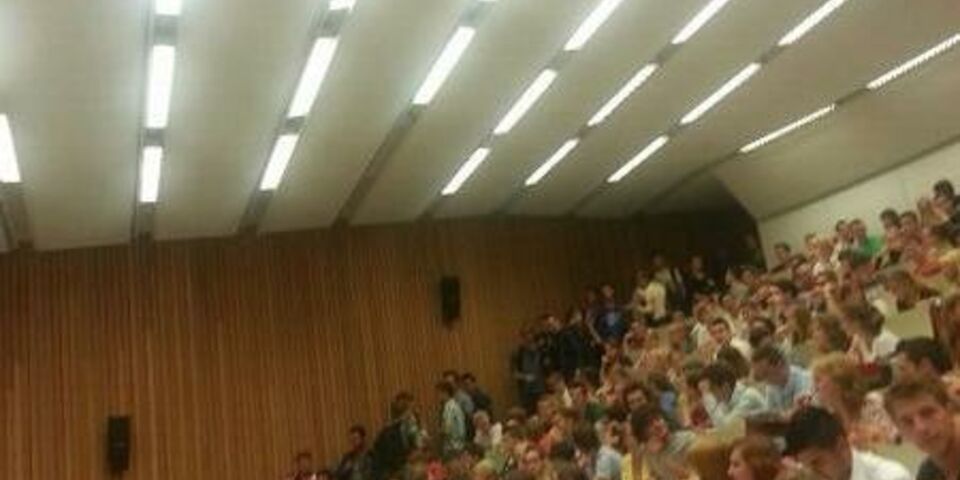 Op twitter ging gisteren al snel het bericht rond dat studenten de collegezaal moesten verlaten vanwege de enorme toestroom bij het vak Calculus. In de reacties op dit bericht werd onder meer verwezen naar vergelijkbare situaties die zich vorig jaar voordeden. Volgens Lex Lemmens was dit jaar daarom nauwgezet gekeken naar het rooster om dat juist te voorkomen. Lemmens: "Maar helaas tevergeefs, want je kunt wel een paar mensen op de trap naast de collegebanken laten zitten, maar als de hele trap volloopt moet je vanwege veiligheidsoverwegingen toch besluiten om mensen te gaan weren."