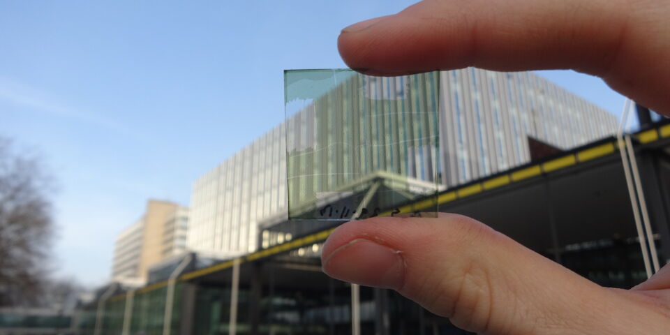 Technisch gezien is vooral het maken van doorzichtige elektrodes voor deze zonnecellen een uitdaging, vertelt hij. “Je kunt een heel dun laagje zilver gebruiken als elektrode. Als je die dun genoeg maakt, is hij doorzichtig. Normaal gesproken zou je zo’n metaallaagje opdampen, maar dat is tijdrovend en duur. Wij werken aan doorzichtige elektrodes die je vanuit een oplossing, via spincoating, kunt aanbrengen. Dat is een veel sneller en goedkoper proces.”