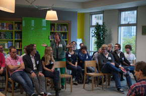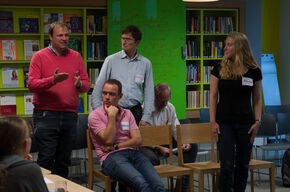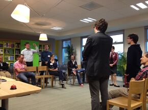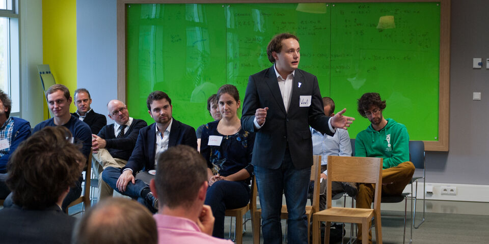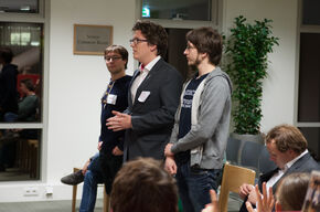 Overigens leiden niet alle stellingen tot verdeeldheid. Jeroen van Oorschot (Technische Informatica) is slechts een van de weinige voorstanders van het instellen van een numerus fixus bij de bacheloropleidingen van de faculteit. Om zo de kleinschaligheid -en excellentie- te behouden en de werkdruk van de staf te verlagen. Daarop vraagt onderwijscoördinator Marloes van Lierop zich af hoe aankomend studenten geselecteerd zouden moeten worden. “Ongeacht de selectiecriteria, weet ik zeker dat een aantal van jullie hier vanavond niet gestaan zou hebben.” Docent Benne de Weger reageert met een kwinkslag: “De werkdruk van docenten Wiskunde is vooral hoog als gevolg van de basisvakken die ze moeten verzorgen voor andere faculteiten. Dus een numerus fixus voor alle faculteiten, behalve de onze!” “Hear, hear!” aldus de zaal.