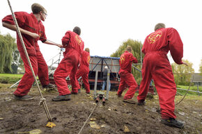 Klappertandend, bibberend en dapper lachend staan groepjes studenten klaar om hun constructie te testen. Sommigen staan in blote natte buiken te wachten tot ze aan de beurt zijn. Ze moeten casuscoördinatoren dr. Regina Luttge of dr.ir. Joris Remmers eerst vertellen welke kracht ze verwachten nodig te hebben voor hun werkstuk uit elkaar knalt - en zij in de Dommel belanden. Behalve de constructie in elkaar zetten in één avond, één ochtend en één middag, moeten ze een verslag schrijven waarin ze de verwachte kracht berekenen en na de test moeten ze hierop reflecteren in een eindverslag. Luttge: “Praktijk en theorie liggen nog ver uit elkaar. Een millimeter verkeerd zagen kan al een andere spanning geven.”