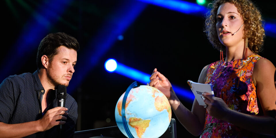 Bij welke temperatuur sublimeert droge rijst? Hoe gedragen twee waves van mensen in een stadion zich als ze elkaar tegenkomen? Wat gebeurt er met de lengte van de dag wanneer de wind plots stopt? Presentator Filemon Wesselink stelde dit soort vragen maandagavond tijdens de Science Quiz van de Intro. Masterstudent Technische Natuurkunde Lieke de Cock beantwoordde ze.