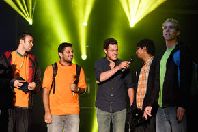 Niet dat ze makkelijk waren. Groepje ‘Tuinmannen’ van Electrical Engineering, te herkennen aan handschoenen en plantenspuit, debatteert lang over de vraag naar de gevolgen voor de daglengte bij het stilvallen van de wind. Bart Bas denkt dat de dag korter wordt, “want er komt minder wrijving en dan gaat aarde sneller draaien.” Onzin, vindt Menno Nijssen, “24 uur blijft 24 uur”. Steen, papier en schaar moet uitkomst bieden. De Tuinmannen stemmen voor een kortere dag.
