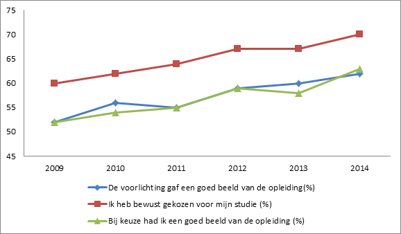 Eind 2014 zei 63 procent van de eerstejaars dat ze een goed beeld hadden van hun opleiding toen ze hun studiekeuze maakten. Een jaar eerder was dat nog 58 procent. Verder gaven meer eerstejaars aan dat ze bewust gekozen hebben voor hun opleiding en dat de voorlichting een goed beeld gaf van wat hun studie behelst.