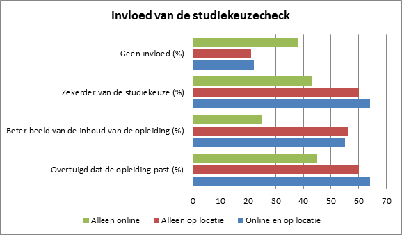 De studiekeuzecheck werpt meer vruchten af als aspirant-studenten mogen langskomen op de universiteit of hogeschool. Eerstejaars die persoonlijk contact hadden met iemand van de opleiding, zeggen vaker dat ze nu zekerder zijn van hun studiekeuze, dan eerstejaars die alleen online kennis hebben gemaakt.