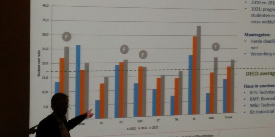 En als er dan net als bij Werktuigbouwkunde in Delft zoveel commotie ontstaat dat de samenleving vraagt het besluit terug te draaien (zoals daar gebeurde - red.)? Daar is Frank Baaijens heel resoluut over: “Dan moeten we onze poot stijf houden.”