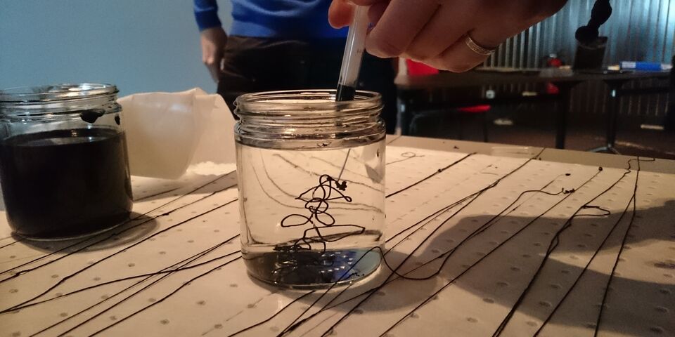Zelf een supersterke vezel maken van vloeibare kristallen met een spuitje in een bekerglas. Het was een toepasselijke afsluiting van de publieksochtend van de workshop Playing Colloidal Mikado, georganiseerd door het Europese netwerk DiStruc. Het publiek in de Zwarte Doos werd voorafgaand aan de demonstratie bijgepraat over het vakgebied van DiStruc: vloeibare kristallen en andere zogeheten colloïden - deeltjes van ongeveer een micrometer.