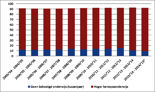 Ook vwo’ers kozen eieren voor hun geld. Van hen ging voorheen zo’n zeventig procent meteen na hun examen studeren. In 2014 steeg dat naar tachtig procent.