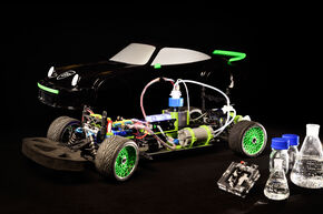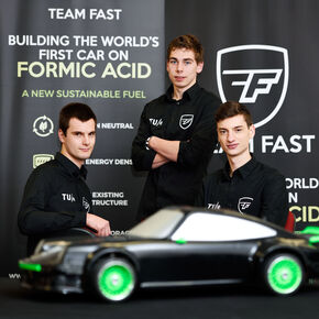 Donderdagavond presenteerde Team FAST (Formic Acid Sustainable Transportation), dat inmiddels uit 22 studenten bestaat, haar Formauto Junior. Het is een model van één meter lang en veertig centimeter breed dat zelfstandig een rondje reed in de Blauwe Zaal van het Auditorium. Bezoekers kregen ook de kans om onder Juniors motorkap te kijken om een beeld van de techniek te krijgen.