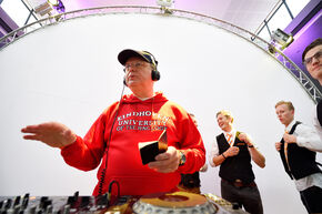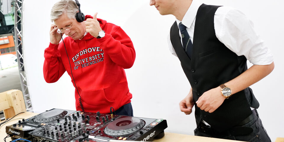 Daar kwam onder meer Studium Generale-directeur Lucas Asselbergs in actie - hij bespeelde live de synthesizer met zelf gecomponeerde muziek. Ook collegevoorzitter Jan Mengelers kroop achter de draaitafel, hij schotelde zijn publiek voornamelijk rock voor -denk AC/DC en Bruce Springsteen. Iedere gast-dj werd bijgestaan door Discom ’86. De laatste nummers in de Markthal werden gedraaid door dj Mikey Biemans.