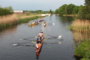 Met gemiddeld meer biertjes dan roeiers stappen de deelnemers aan boord en onder het mom van ‘meedoen is belangrijker dan winnen’ verlaten ze het vlot. De andere teams wachten hun beurt netjes af. Dit kan best lang duren aangezien de meeste boten moeite hebben om op te lijnen voor de start. Vanaf de kade wordt het schouwspel gadegeslagen door een dertigtal studenten terwijl het gros van de bezoekers alvast een voorschot neemt in de feesttent. Er heerst een gemoedelijke sfeer met hier en daar een fanatieke uitschieter wanneer de interne dispuuthuizen het tegen elkaar opnemen.
