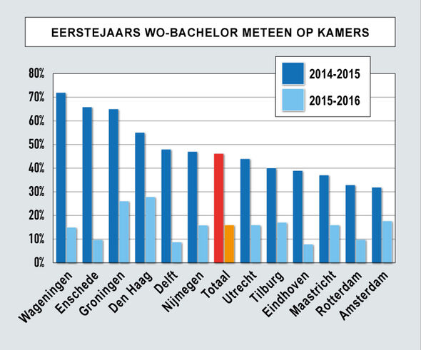 Bij de Universiteit Twente in Enschede wekken de cijfers eveneens verbazing. Volgens Kences zou daar nog maar tien procent van de eerstejaars meteen op kamers gaan, maar een student van een studievereniging denkt dat het niet klopt. “Wij hebben niet de indruk dat er iets veranderd is. Studenten willen toch wel in de stad wonen en de meesten zouden veel te ver moeten reizen.”