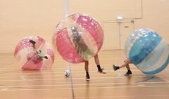 Gebeukt kon er ook worden bij bumperball op de openingavond, afgelopen maandag. Eén deelnemer ondervond aan den lijve at dat niet altíjd leuk afloopt - met een hersenschudding tot gevolg. "Iedereen beukt vol tegen elkaar, de bal moet dan wel goed om je lijf zitten. Als bijvoorbeeld je hoofd ook maar iets uitsteekt, kan het gevaarlijk worden", aldus Klarenbeek. De aanwezige EHBO'ers ontfermden zich over de pechvogel en droegen de zorg daarna over aan het ziekenhuis.