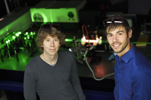 In het lab van PMP in Spectrum laten Engelns promovendi Bart Klarenaar en Mark Damen een handvol opstellingen zien die allemaal worden gebruikt om het bovengenoemde dissociatieproces van CO2 te onderzoeken. Dit doen ze door CO2-plasma te beschijnen met diverse soorten licht. Een grote monitor toont een grafiek met een groot aantal scherpe pieken. Het zijn de door Engeln gememoreerde moleculaire trillingen, de zogeheten vibratietoestanden van CO2, zichtbaar gemaakt met infrarood licht. Klarenaar: “Zo’n apparaat hebben ze ook bij DIFFER en bij collega’s in Parijs. We doen de metingen apart, maar de resultaten bediscussiëren we uitgebreid, en we schrijven ook samen artikelen.”