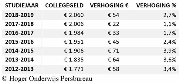 Sinds 2015-2016 vlakte de stijging van het collegegeld af doordat de inflatie laag was. Voor het huidige collegejaar was de stijging de kleinste in jaren (22 euro), maar volgend jaar is die dus ruim twee keer zo groot.