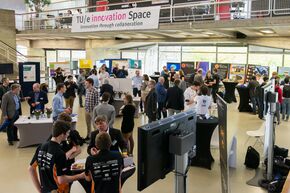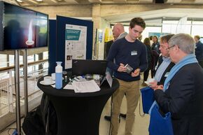 Een belangrijk doel van ‘Where Science Meets Business’ was dan ook om de studententeams te koppelen aan bedrijven. Daartoe presenteerden alle studententeams van de TU/e – meer dan een dozijn inmiddels – zich op de Tech Fair in de hal van het Auditorium. Nieuwkomers zijn de leden van Team Solid, een honorsproject van tweedejaars studenten. Ze zijn nog maar met zijn drieën, vertelt student Werktuigbouwkunde Bart Ruis. “We willen als proof-of-concept een kleine motor maken die op ijzerpoeder draait. Als mensen kunnen zien dat dit werkt worden ze hopelijk enthousiast.”