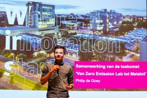Eerder in de Blauwe Zaal had decaan Philip de Goey van Werktuigbouwkunde dit onderwerp ook al aangesneden. Hij vertelde over Metalot, een plan om het terrein rond zinkfabriek Nyrstar bij Budel om te vormen tot een plek waar metaalpoeder wordt geproduceerd en gerecycled als brandstof voor verbrandingsmotoren. Dat moet gebeuren met schone energie, waardoor het metaalpoeder (ijzer of zink) kan worden gezien als een schone energiedrager. Verbranding is niets meer dan een supersnel oxidatieproces. En aangezien ijzer- en zinkerts ook geoxideerde metalen zijn, legde De Goey uit, ligt het voor de hand om Nyrstar de basis te maken voor een recyclefaciliteit voor ‘metal fuels’.