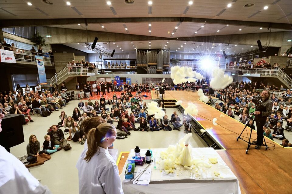 De hal van het Auditorium wordt maandag als proef ingezet als tijdelijke tentamenzaal. Die ochtend stort een recordaantal van maar liefst 2.400 eerstejaars studenten zich verspreid over de campus op de eindtoets voor het basisvak Calculus; 114 van hen worden gestationeerd in genoemde open hal.