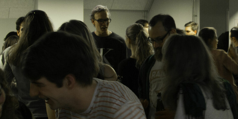 In de ‘Cross-overzaal’ - zoals de ruimte in de kelder van Plint officieel heet, maar die ook wel ‘bunker’ wordt genoemd - zijn woensdagavond rond de vijftig mensen. Tot januari is dit hun ontmoetingsruimte. Ze zijn klaar met repetities van Doppio, Footloose en Quadrivium, of hebben gepeeld, zoals de Knights of the Kitchen Table. Of ze zijn er omdat ze dat zo gewend zijn. Goossens heeft bewust de name reveal na tien uur gepland.