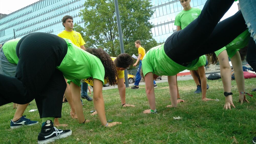 Het ene groepje is wat competitiever dan het andere (en dan kijk ik even naar CHEOPS 22), maar iedereen is blij met de punten. Zie Max Kokx van CHEOPS 19 stralen met zijn mond vol spekjes bij de marshmallow-game. Hij hapte ze zo uit de lucht. “Je bent net een zeehond”, complimenteert groepsgenoot Luca Meine. “Je kan zo naar ’t Dolfinarium.”