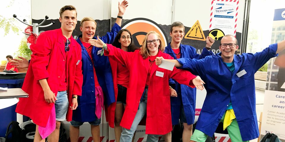 De mobiele, tailor-made escaperoom is sinds kort eigendom van de Career Academy en het Skills Lab van de TU/e en beleefde vandaag zijn debuut als branding-middel voor de samenwerkende organisaties. Ze willen de unit, waarin onder andere het teamwork van spelers nadrukkelijk wordt getest, op meer evenementen gaan inzetten, maar ook gebruiken voor bijvoorbeeld teamactiviteiten van (groepen) TU/e-medewerkers.