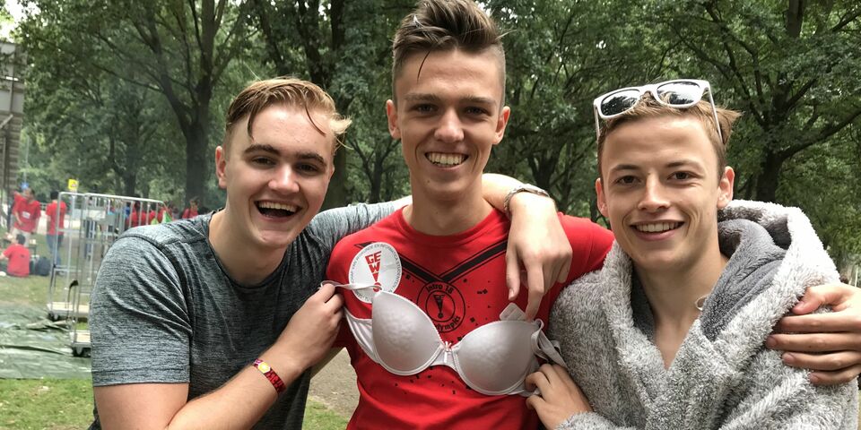 Want hij weet het ook niet, hoe die beha nou uitgerekend in zíjn bed belandde. Zijn bed, temidden van dat van negen andere mannelijke logés in het Thêta-dispuutshuis aan de Heezerweg. Gijs is zich van geen kwaad bewust, laat staan van vrouwelijk bezoek tussen zijn lakens. Eerlijk is eerlijk: we bespeuren zo op het eerste oog ook weinig scoringsdrang bij deze nuldejaars.