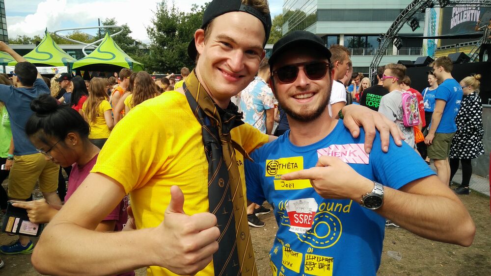 “Ik heb een mooie boodschap voor Cursor”, komt Arend-Jan van Noorden naar me toe. “Dit is echt mooi. Echt. Ik woon al zeven jaar in Eindhoven en ben al vijf jaar lid van Thêta. Ik heb de Intro al vijf keer van de andere kant gezien. Maar nu ben ik EINDELIJK INTROKID. En dat voelt zó goed.” De laatbloeier (27 jaar) heeft de route vmbo-T, mbo, hbo afgelegd. Nu is hij schakelstudent bij Werktuigbouwkunde. Hij vertelt wat over zijn brassen van dassen (“alle mogelijke bij Simon Stevin”) en wil tot slot nog iets dieps zeggen. “Weet je dat ik EINDELIJK introkid ben? En heel trots?”