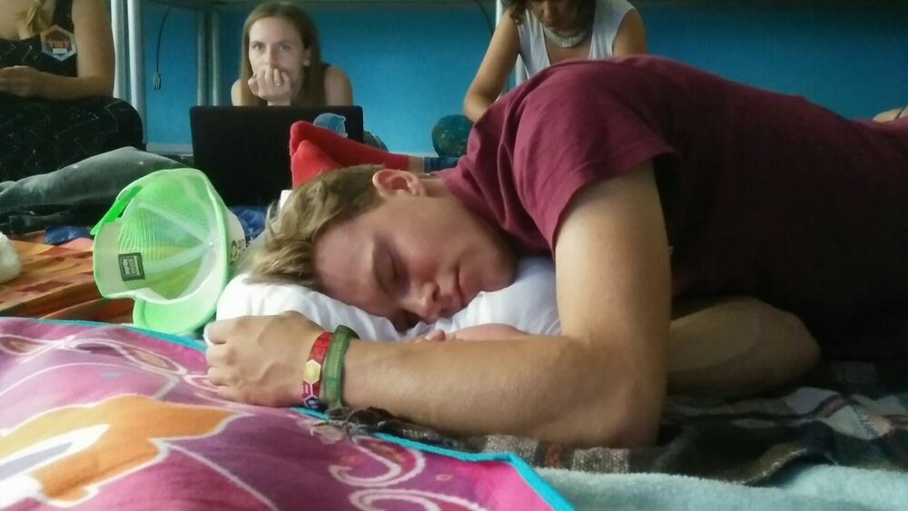 Iedereen deed het héél goed bij de workshop Powernapping, maar Pieter Drabbe (aankomend BMT’er en ESC-lid) was niet meer te stoppen. Hij sliep en sliep en sliep. Terwijl hij ook zo fijn naar vier voorleesverhaaltjes had kunnen luisteren. Er kwam een stevige fysieke por aan te pas om hem wakker te maken. De rest van de negen deelnemers werd weer actief omdat lifecoach Margit van Tuijl ze daar toe aanspoorde.