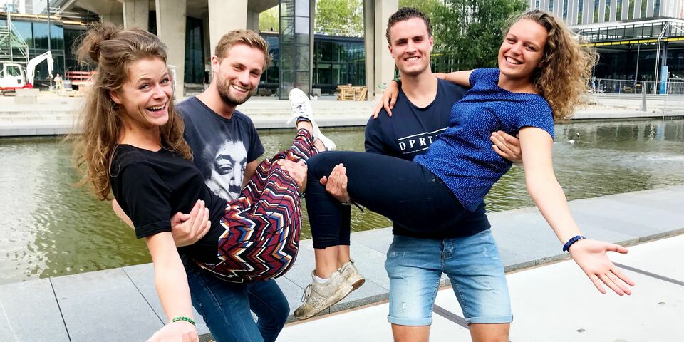 Eigenlijk waren ze op weg naar de workshop bierbrouwen, vertelt het ietwat doelloze viertal. Hun introgroepje (een uitgebalanceerde mix van bachelor- en pre-masterstudenten) werd pas wat later dan alle andere geformeerd, waardoor dit “samengeraapte zooitje” (hun woorden) zich uiteindelijk niet meer kon inschrijven voor de workshops van vandaag.
