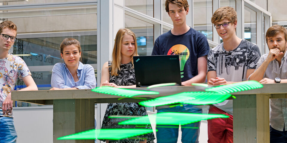 Daarop belandde het verzoek bij de onderzoeksgroep Control Systems Technology, meer specifiek bij universitair docent Duarte Guerreiro Tomé Antunes. Van Dooren: “Hij vond het wel iets voor ons.” En dat vond ook ongeveer de helft van de honorsstudenten binnen genoemde track, die de artistieke uitdaging wel wilden aangaan (anderen stapten in een tweede honorsproject, gericht op autonome racedrones).