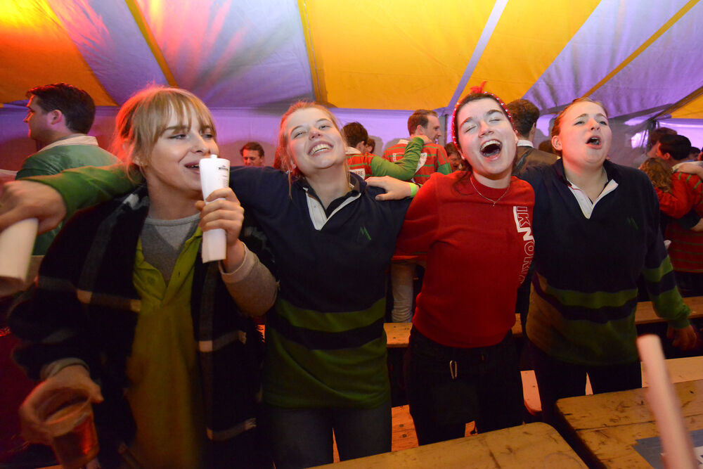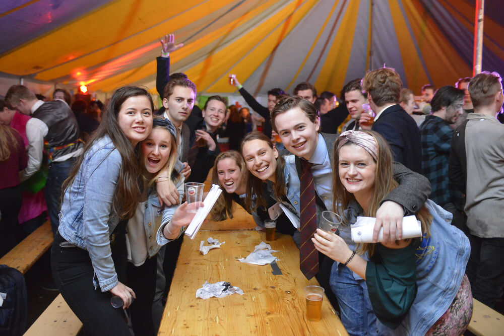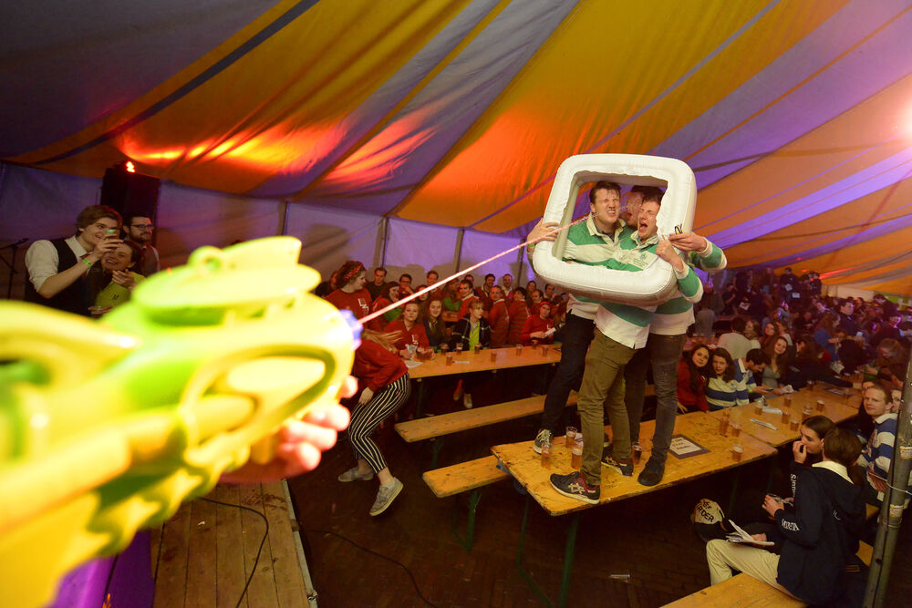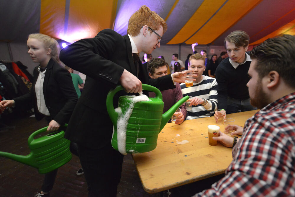 Het inkoopbeleid van de studentengezelligheidsvereniging voor het jaarlijkse zangfestijn was strak, bleek vrijdag aan het einde van het evenement toen de drankbalans werd opgemaakt. “Op één fust na is al het bier erdoorheen gegaan”, vertelt SSRE-bestuurder Daan Hommersom, die ondanks zijn krappe drie uur slaap verrassend fris klinkt als Cursor hem zaterdagochtend spreekt. Een krappe tweeduizend liter - gedistribueerd in groene gieters - tikten de aanwezigen in drie uur tijd weg. “Ik denk dat er op dit moment nog wel wat mensen in bed liggen.”
