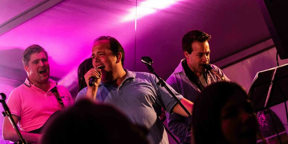 Foto bovenaan toont Het Bandje, een band met allemaal Demos-reünisten. Foto | Kunal Datta