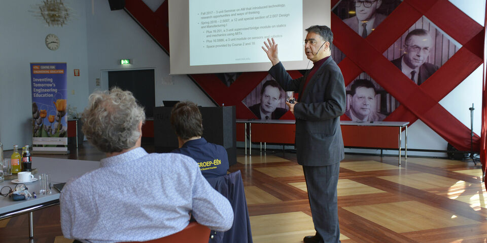 “Waar lig je ’s nachts wakker van?”, wil Amitava Babi Mitra van zijn publiek weten, dat vooral uit docenten en beleidsmedewerkers bestaat. Aarzelend volgen enkele reacties. Volgens Mitra, directeur New Engineering Education Transformation, moet het haast wel zijn dat je studenten niet meer komen opdagen en hun interesse verliezen in je vak. En dat is precies een van de redenen dat het pilotprogramma is opgetuigd. “We staan hoog in de rankings, we trekken genoeg studenten, dus daarom hoeven we het niet te doen”, vertelt de MIT-directeur. Het antwoord uit het publiek ‘omdat jullie het beste voor de student willen’, blijkt het schot in de roos te zijn.