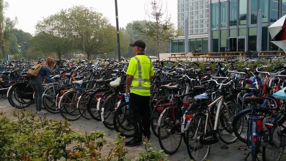 “Soms staan er nog fietsen van studenten die inmiddels al afgestudeerd zijn”, zegt Hay Becks, teamleider TU/e Security. “We hebben 9.500 rekken, maar we moeten de aanwezige fietsen samen met Dienst Huisvesting blijven opschonen. Ieder half jaar halen we daarom de weesfietsen op. Die gaan vervolgens naar een stichting waar ze worden opgeknapt en verkocht voor een goed doel.”