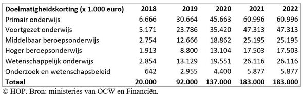 Het hoger onderwijs kan overigens meer geld tegemoet zien dankzij de opbrengst van het nieuwe leenstelsel, waarin de basisbeurs is afgeschaft: voor volgend jaar is het 184 miljoen euro. Dit geld is bedoeld om het hoger onderwijs te verbeteren.