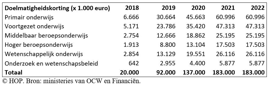 De ‘doelmatigheidskorting’ werkt de andere kant op. In een debat over de vorige begroting zei minister Van Engelshoven dat ze liefst zou bezuinigen “door te kappen in het woud van overleggen” in het onderwijs, maar ze begreep dat dit niet genoeg zou opleveren. De bezuiniging “gaat ergens pijn doen”, erkende ze. De senatoren in de Eerste Kamer konden dat maar moeilijk verkroppen en leverden felle kritiek, maar daar bleef het bij. Ze wilden het kabinet niet dwingen om de koers te wijzigen en dus gaat de korting niet van tafel.