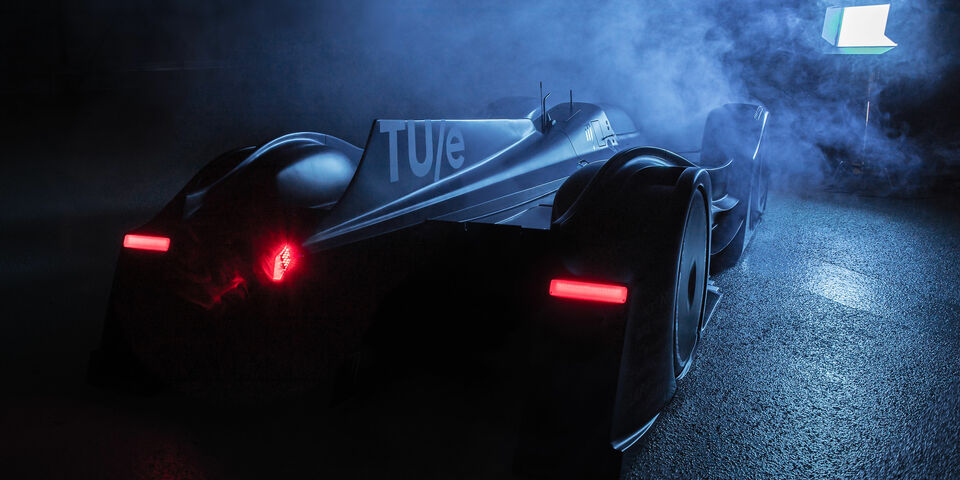 InMotion heeft gisteravond zijn ‘Vision’ onthuld. Met deze concept-raceauto wil het TU/e- en Fontys-studententeam de komende jaren vooral laten zien dat het opladen van elektrische auto’s fors sneller kan - uiteindelijk net zo snel als het vullen van een brandstoftank.